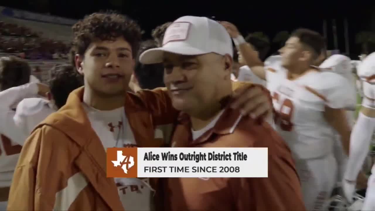 KINGSVILLE, Texas — The Alice Coyotes (8-1, 6-0) secured their first UIL district 16 4A-DI championship outright since 2008 under their first-year head coach J.R. Castellano after shutting out H.M. King 32-0 on Thursday on our Game Night South Texas broadcast.