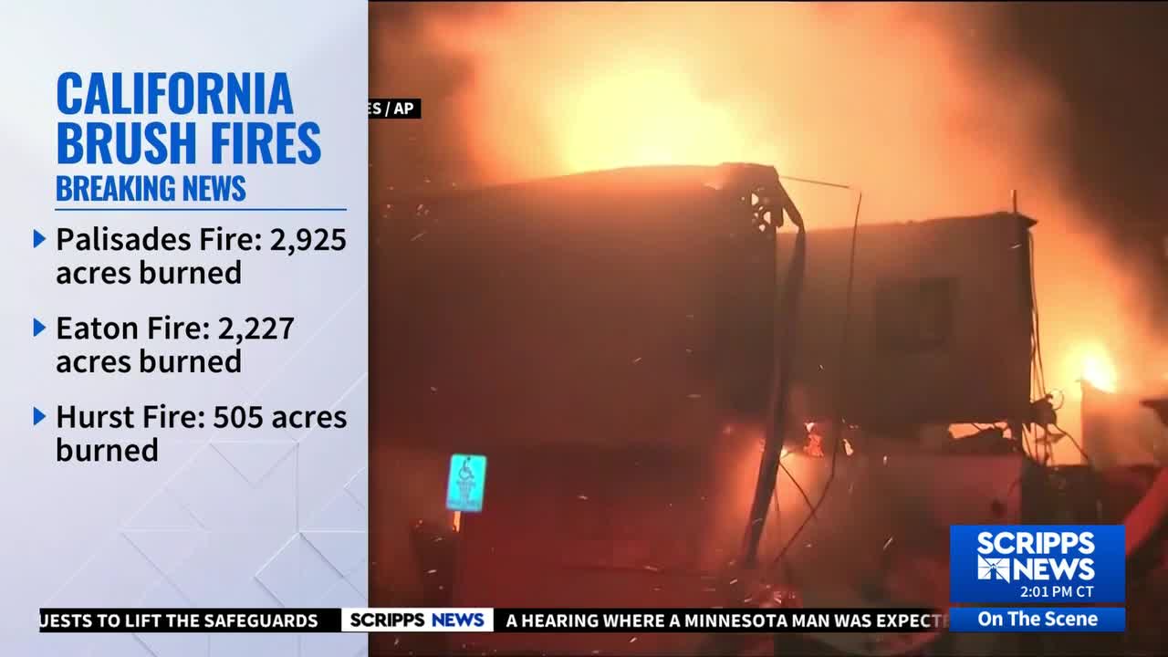 The largest of the fires is the Palisades Fire, which has grown to about 12,000 acres in the affluent Pacific Palisades neighborhood.